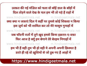 Lyrics of Ulfat Ki Nai Manzil Ko Chalaa - उल्फ़त की नई मंज़िल को चला वो बाँहें डाल के बाँहों में