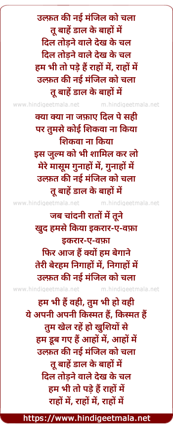 Lyrics of Ulfat Ki Nayi Manzil Ko Chala - उल्फ़त की नई मंजिल को चला