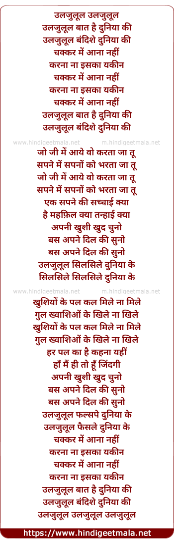 Lyrics of Uljalul Baat Hai Duniya Ki - उलजुलूल बात है दुनिया की