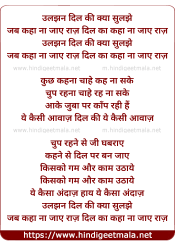 Lyrics of Uljhan Dil Ka Kya Suljhe - उलझन दिल की क्या सुलझे