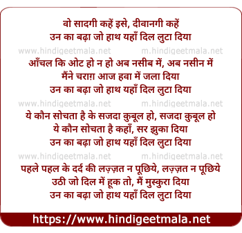 Lyrics of Unka Badha Jo Haath Yaha Dil Luta Diya - उन का बढ़ा जो हाथ यहाँ दिल लुटा दिया