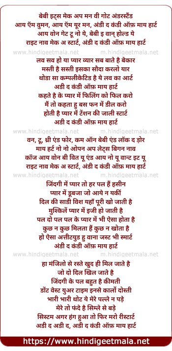Lyrics of Undi The Condi Of My Heart - अडी द कंडी ऑफ़ माय हार्ट