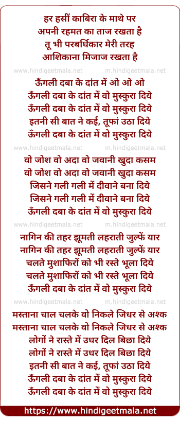 Lyrics of Ungli Daba Ke - हर हसीं काबिरा के माथे पर