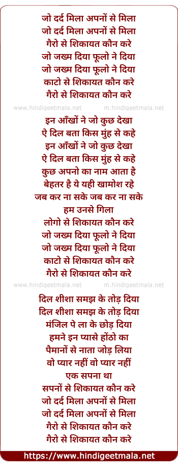 Lyrics of Gairo Se Shikayat - गैरो से शिकायत