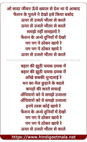 Lyrics of Upar Se Ujle Bhitar Se Kale - ऊपर से उजले भीतर से काले