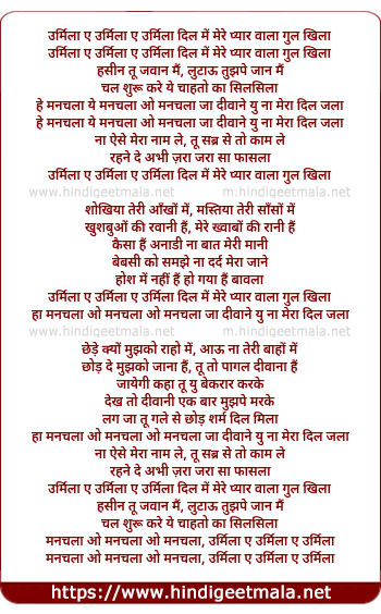 urmila ai urmila ai urmila dil me mere pyaar waala gul khila
