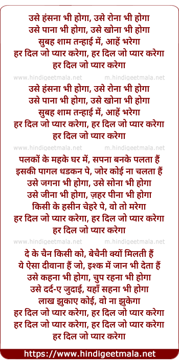 har dil jo pyaar karega, har dil jo pyaar karega