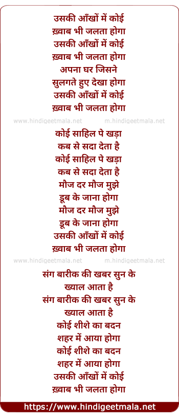 Lyrics of Uski Ankhon Me Koi - उसकी आँखों में कोई