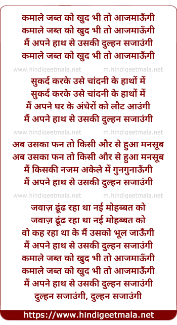 Lyrics of Uski Dulhan Sajaungi - कमाले जब्त को खुद भी तो आजमाऊँगी
