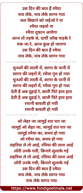 Lyrics of Uss Din Ki Baat Hai - उस दिन की बात हैं रमैया