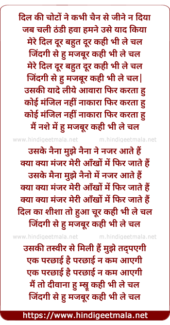 mere dil dur bahut dur kahi bhi le chal