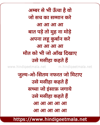 Lyrics of Usse Maseeha Kehte Hain (Sad) - अम्बर से भी ऊँचा है वो