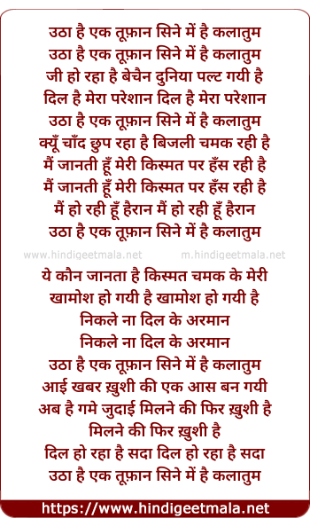 Lyrics of Utha Hai Ek Tufan Sine Me Hai - उठा है एक तूफ़ान सिने में है कलातुम