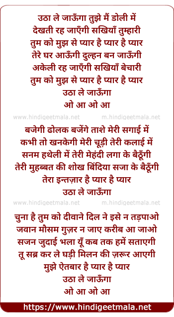 Lyrics of Utha Le Jaunga Tujhe Mai Doli Me - उठा ले जाऊँगा तुझे मैं डोली में