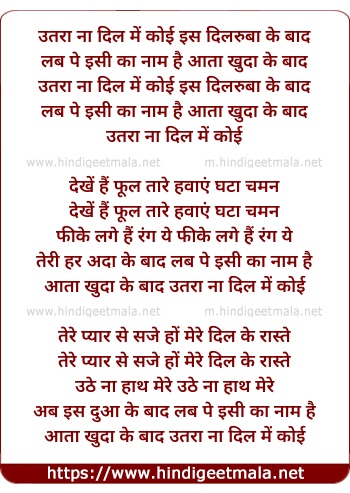 Lyrics of Utra Na Dil Me Koi - उतरा ना दिल में कोई