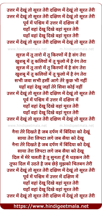 Lyrics of Uttar Me Dekhu To Surat Teri, Yaha Waha Dekhu Dikhe Waha Murat Teri - उत्तर में देखूं तो सूरत तेरी, यहाँ वहाँ देखूँ दिखे वहाँ मूरत तेरी