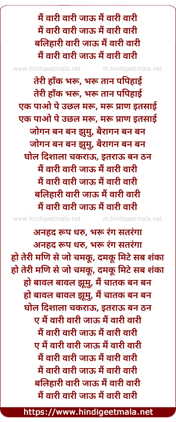Lyrics of Vaari Vaari - मैं वारी वारी जाऊ मैं वारी वारी
