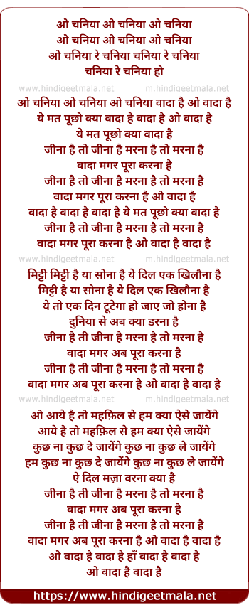 Lyrics of Vadha Hai Vadha Hai - वादा है वादा है