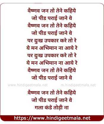 Lyrics of Vaishnava Jana To - वैष्णव जन तो