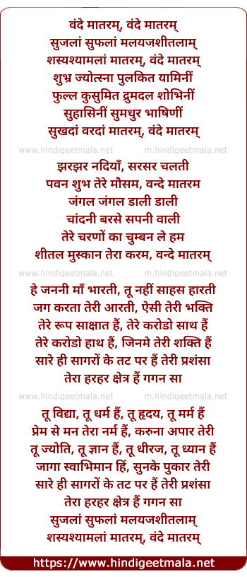 Poetic Translation - Lyrics of Vande Mataram - वंदे मातरम्