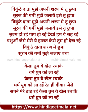 Lyrics of Vaykunthi Data - विकुंठे दाता