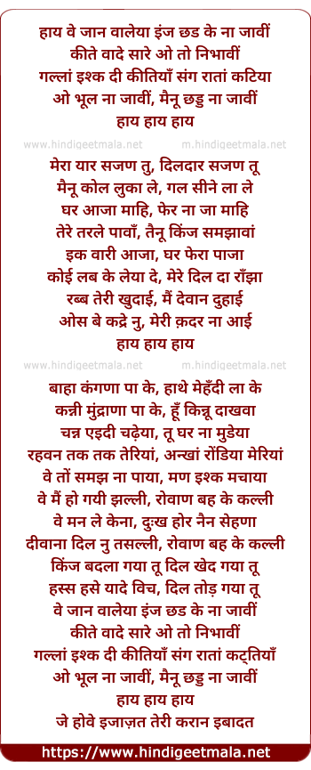 Lyrics of Ve Jaan Valiya (Ijazat) - हाय