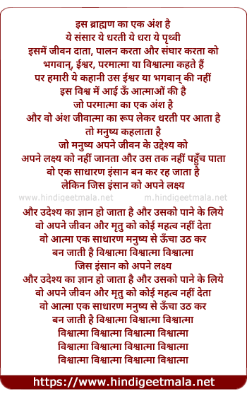 Lyrics of Vishwatma - विश्वात्मा
