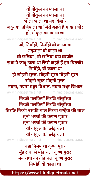 Lyrics of Vo Gokul Kaa Gvaalaa Thaa - वो गोकुल का ग्वाला था