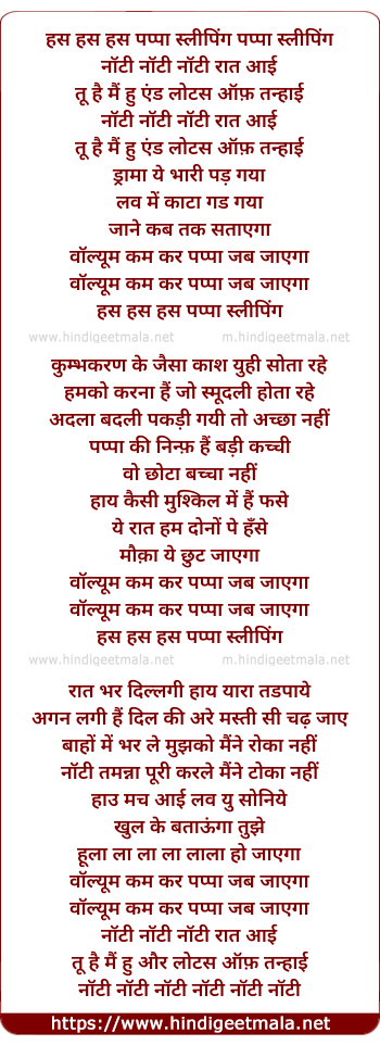 Lyrics of Volume Kum Kar Papa Jag Jayega - वोलुम कम कर पपा जग जायेगा