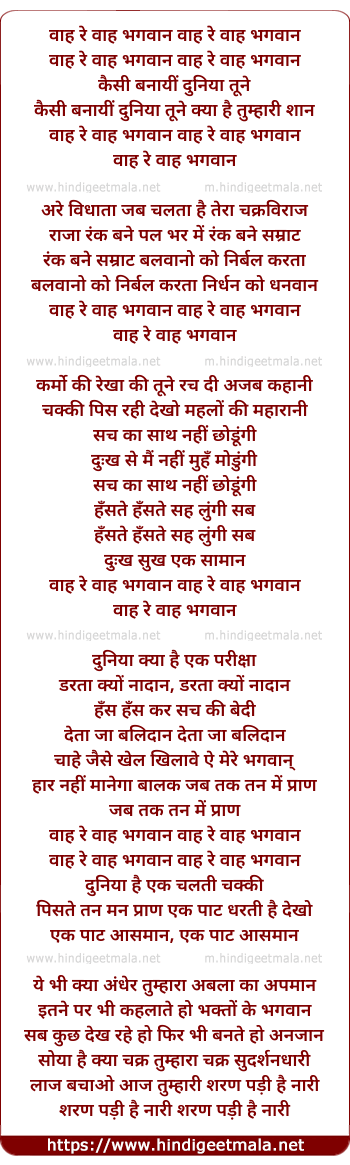 Lyrics of Wah Re Wah Bhagwan Kaisi Banayi Duniya Tune - वाह रे वाह भगवान कैसी बनायीं दुनिया तूने