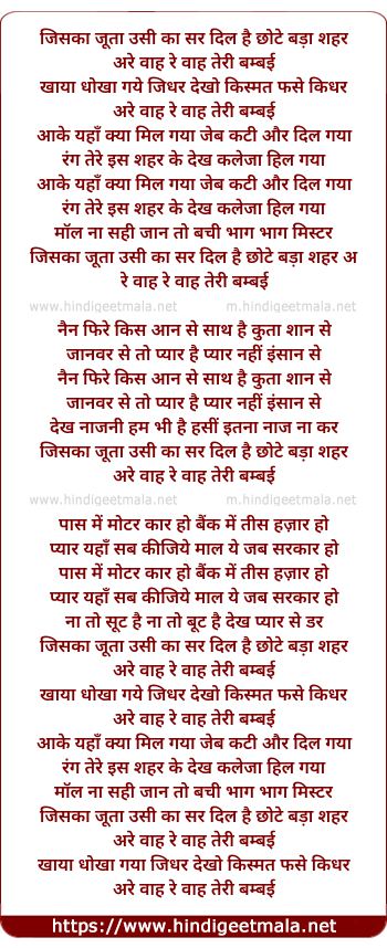 Lyrics of Wah Re Wah Re Wah Re Bambai - वाह रे वाह रे वाह रे बम्बई