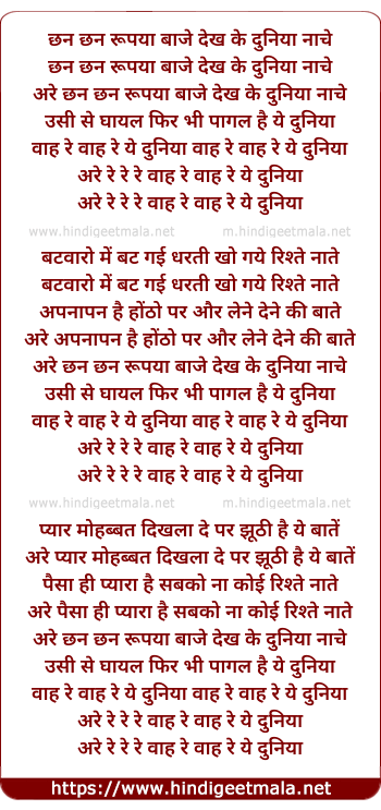 chan chan rupya baje dekh ke duniya nache