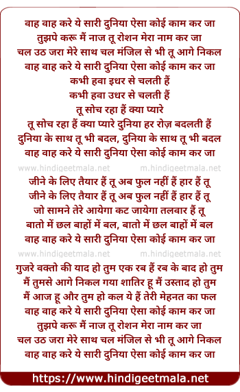 wah wah kare ye sari dunia aisa koi kaam kar ja