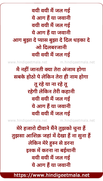 Lyrics of Wai Wai Main Jal Gayi - वयी वयी मैं जल गई