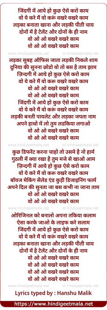 Lyrics of Wakhre Wakhre Kaam - वखरे वखरे काम