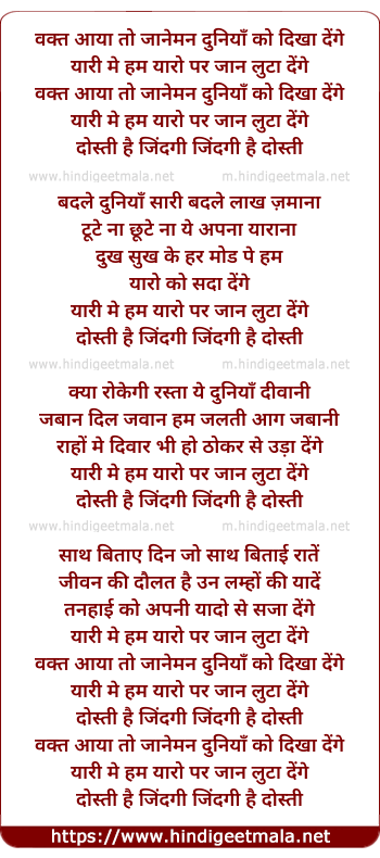 are yaari me hum yaaro par jaan luta denge