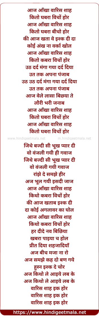 Lyrics of Waris Shaah - आज आँखा वारिस शाह