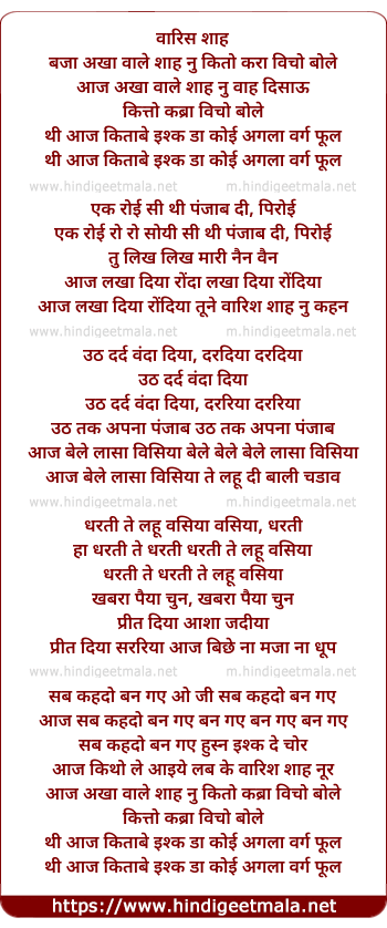 Lyrics of Waris Shah Nu - वारिस शाह नू