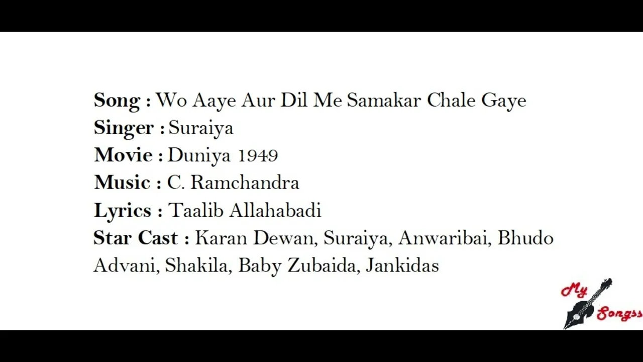 Film CastKaran Dewan, Suraiya, Anwaribai, Bhudo Advani, Shakila, Baby Zubaida, Jankidas