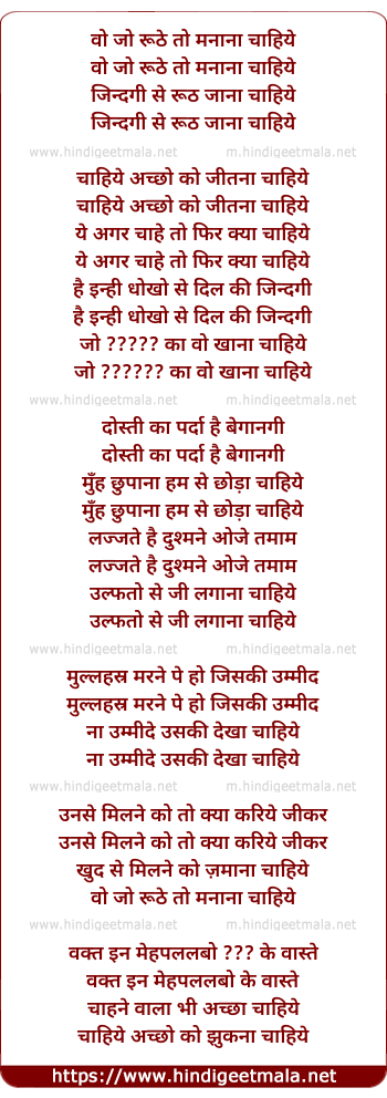 Lyrics of Wo Jo Ruthe To Manaana Chahiye - वो जो रूठे तो मनाना चाहिये