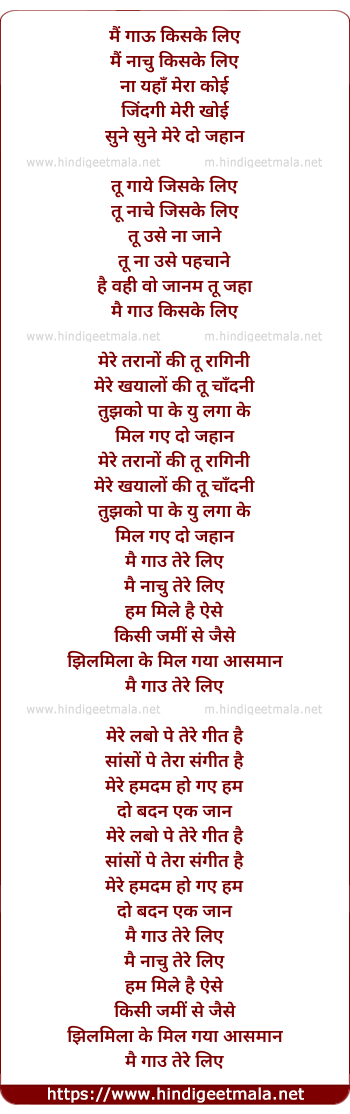 Lyrics of Main Gaau Kiske Liye - मैं गाऊं किसके लिए