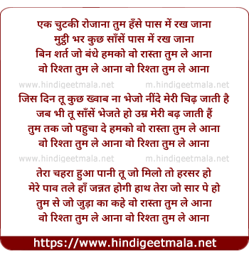 wo rishta tum le aana wo rishta tum le aana