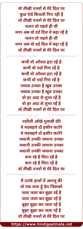 Lyrics of Wo Tikhi Nazaro Se Mere Dil Par - वो तीखी नजरों से मेरे दिल पर