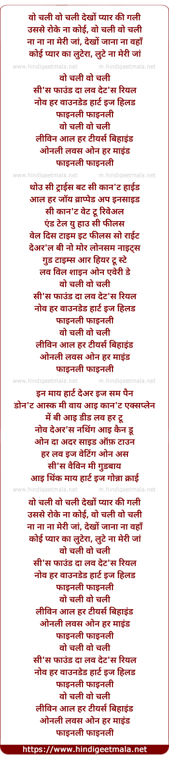 Lyrics of Woh Chali Woh Chali - वो चली वो चली देखों प्यार की गली