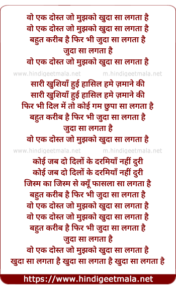 Lyrics of Wo Ek Dost Jo - Female - वो एक दोस्त जो