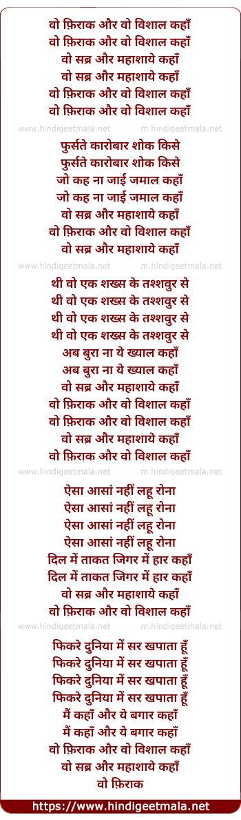 Woh Firaaq Aur Vo Vishal - वो फ़िराक और वो विशाल कहाँ