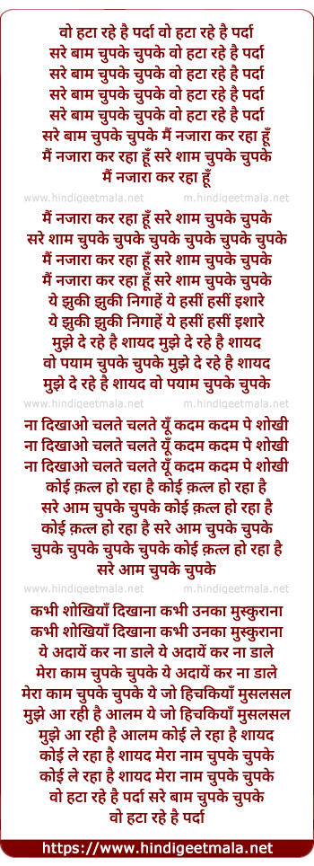 Lyrics of Woh Hata Rahe Hai Parda - वो हटा रहे है पर्दा