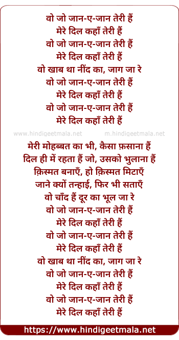 Lyrics of Wo Jo Jaan-E-Jaan - वो जो जान-ए-जान