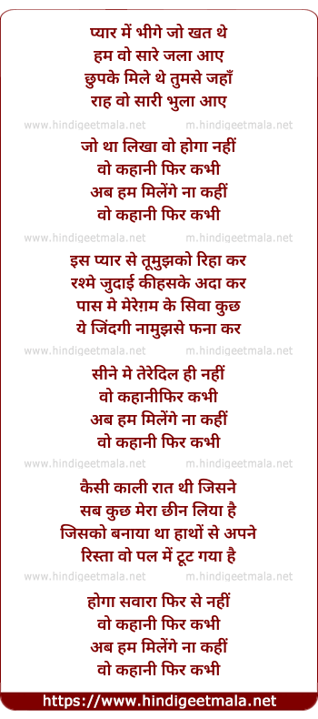 Lyrics of Woh Kahani Phir Kabhi - वोह कहानी फिर कभी