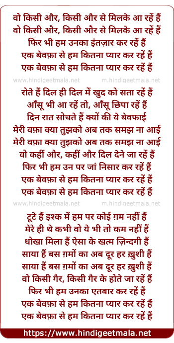 Lyrics of Woh Kisi Aur Se Milke Aa Rahe Hai - वो किसी और, किसी और से मिलके आ रहें हैं